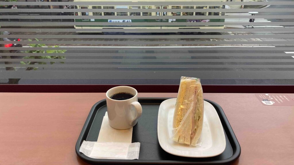 コーヒーとサンドイッチで、お疲れさん会ソロ。