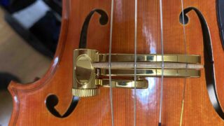 バイオリン、ヴィオラの消音器の登場です。今まで駒に、上から被せる被せるタイプのものがありましたが、これは写真を見ての通り、駒を前後から駒全体を挟むタイプ。こちらの消音器を装着して、演奏してみましたが、ミュートがすごく効いて、音質も被せるタイ...