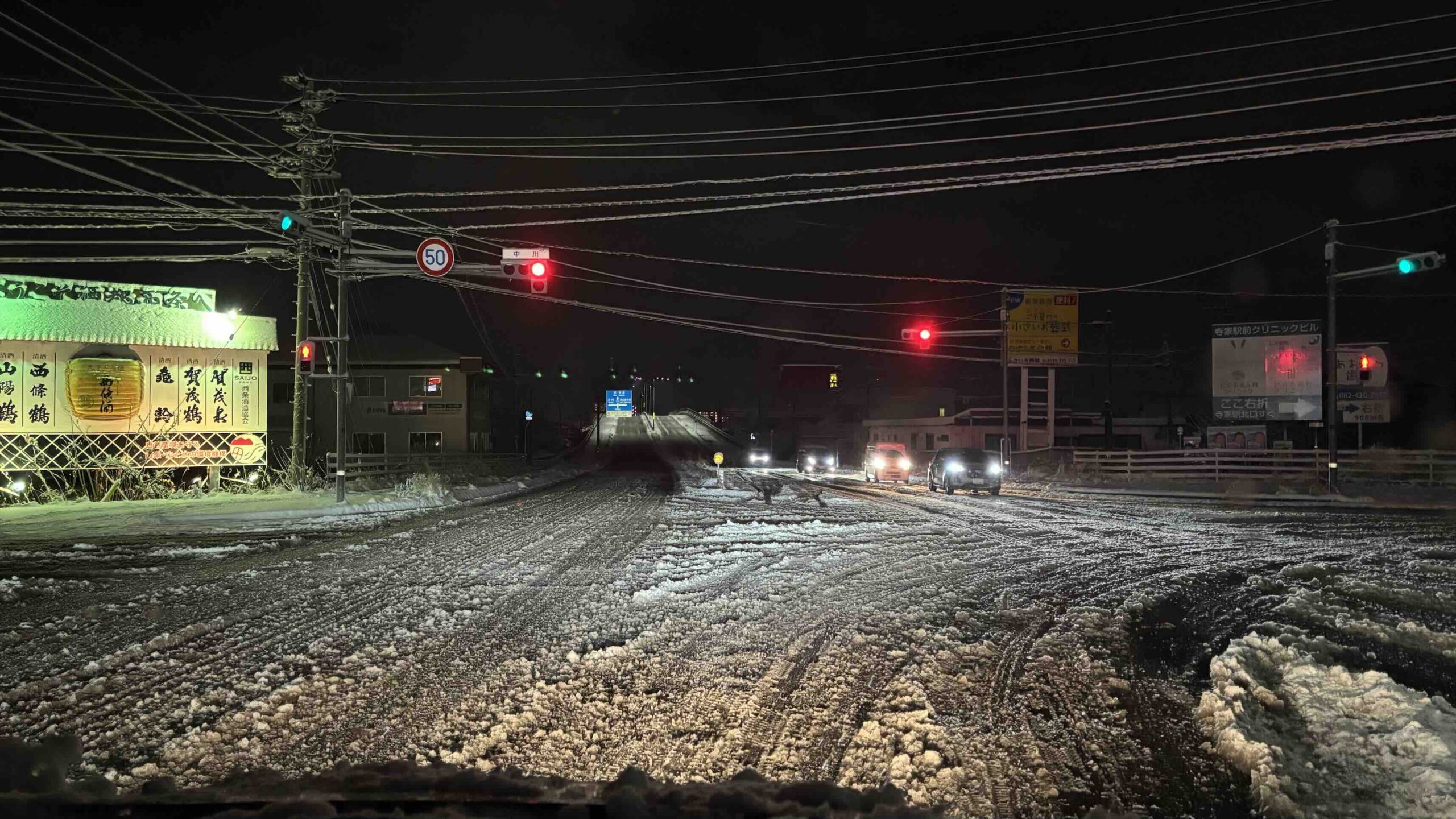 レッスンを終えて、外に出ると、生徒さんの車の屋根には5cmほどの積雪。