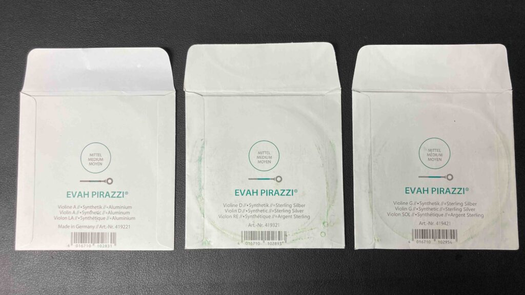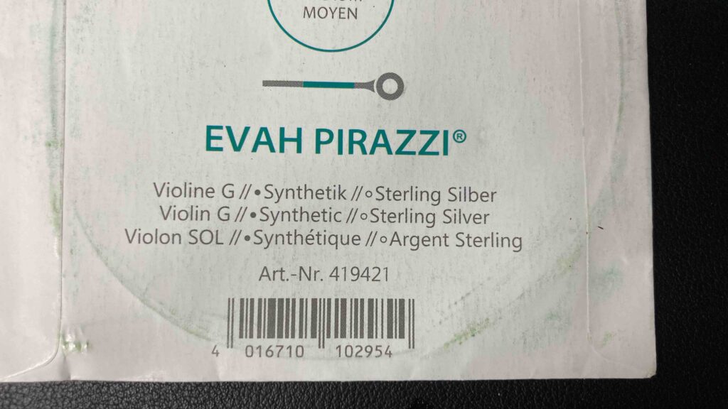 写真は、PiRASTRO社製のなヴァイオリン弦「evah pirazzi」