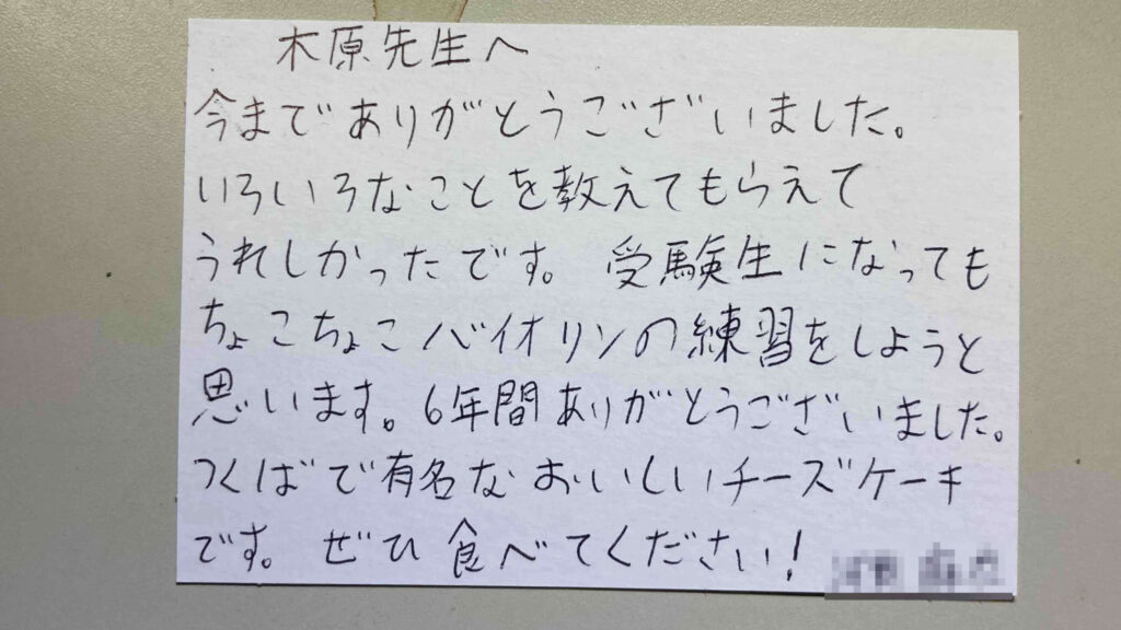 現在、関東在住の生徒さん(中学2年)からチーズケーキが届きました。